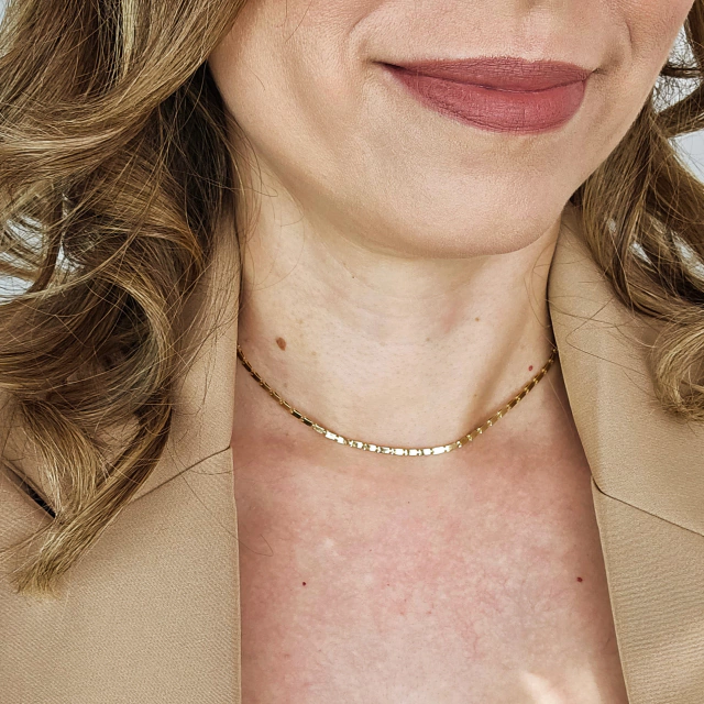 Choker quadradinhos prensados dourada, peça moderna e cheia de estilo, pra deixar suas produções incríveis!