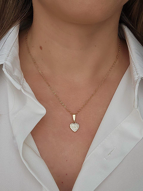 O Colar Coração Cravejado Dourado é um acessório romântico e delicado, perfeito para quem deseja adicionar charme e sofisticação ao look. Seu pingente em formato de coração é cravejado com microzircônias, garantindo brilho sutil e elegância em cada detalhe. Banhado a ouro 18k, oferece acabamento refinado e durabilidade, ideal para o dia a dia ou ocasiões especiais. Um colar feminino atemporal e sofisticado, que valoriza seu estilo com romantismo e delicadeza.
